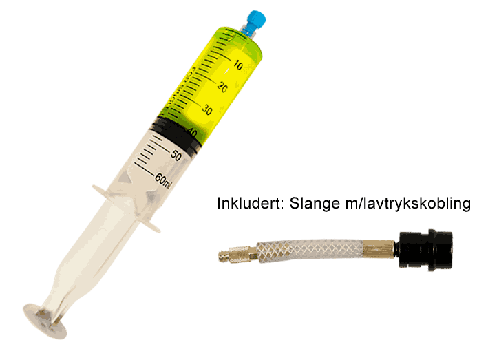 Leak stopp m/sporingsvæske i 40 ml sprøyte for enkel tilføring og minimalt med søl.