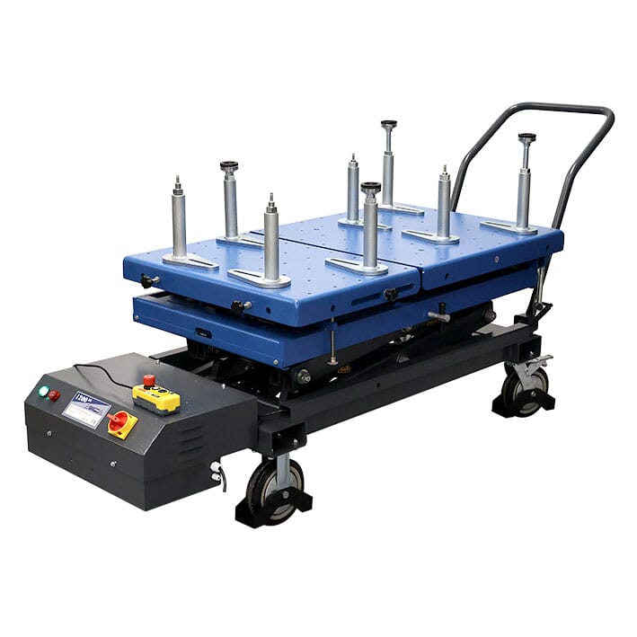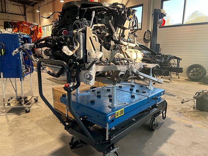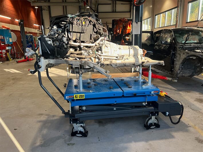 Bordet har fjernkontroll med kabel slik at mekanikeren fritt kan bevege seg