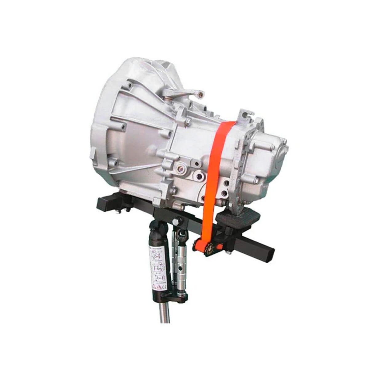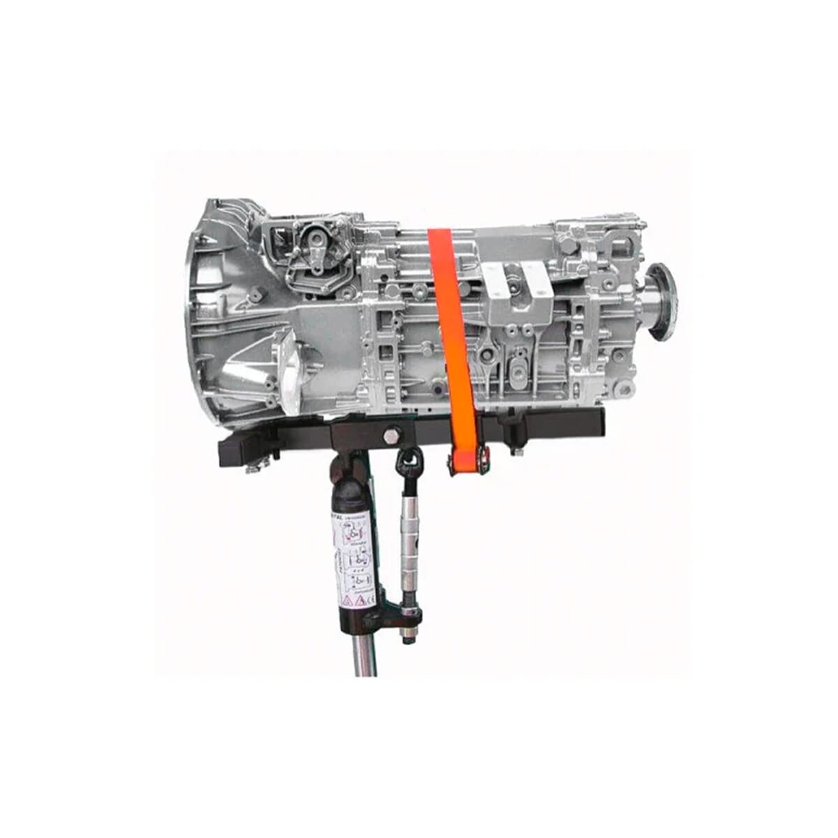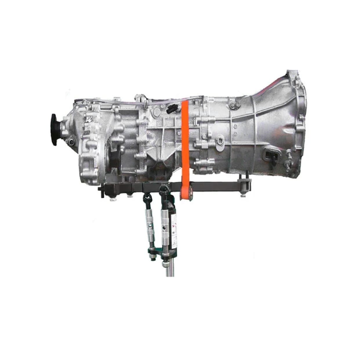 Girkassen ligger stødig på gummiklosser/støtter og festes med sikkerhets-stropp.