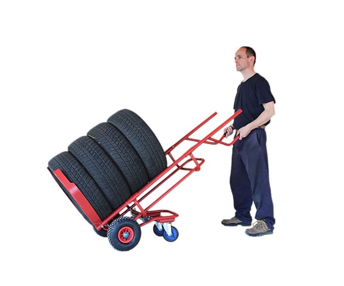Solid hjulvogn for sikker transport. Utstyrt med 4 hjul.