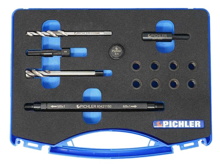 Nytt og oppgradert sett for profesjonell reparasjon av defekte glødeplugg-gjenger. Settet inneholder alt nødvendig verktøy og gjengehylser. Leveres i en solid koffert.Løse gjengehylser leveres fra lager.