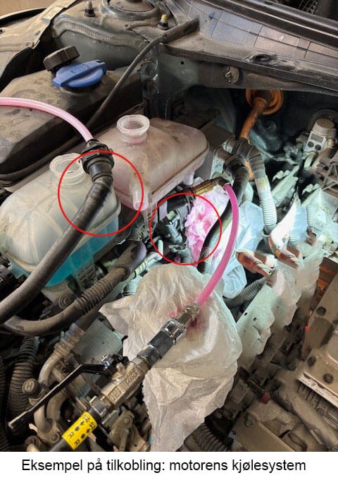 Adaptersett for Hyundai Ioniq 5, Kona og Kia Niro. En optimal løsning for flushing av kjølesystemet. De nyeste modellene fra Hyundai og Kia – som Ioniq 5, Kona og Niro – benytter komplekse kjølesystemer med lukket væskesirkulasjon for både batteri, inverter, motor og klimakontroll.