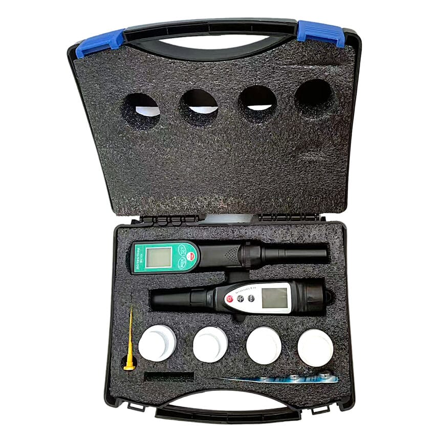 Et komplett sett for profesjonell testing av bilens kjølevæske. Dette settet inneholder elektroniske målere for både konduktivitet (ledningsevne) og pH-verdi, samt nødvendige kalibreringsvæsker for enkelt vedlikehold og nøyaktighet. Settet er spesielt utviklet for bruk på elbiler, som krever spesiell lav-konduktivitetsvæske for å beskytte høyspentkomponenter. PH-testeren i settet passer imidlertid til alle typer kjøretøy (el, hybrid og forbrenningsmotorer).