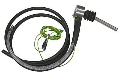 Trykkluft tilkobles og et svakt undertrykk bygges opp i tanken hvorpå gassene suges ut.