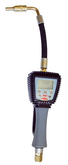 Digital fyllepistol med telleverk og mulighet for forhåndsinnstilling av ønsket mengde.