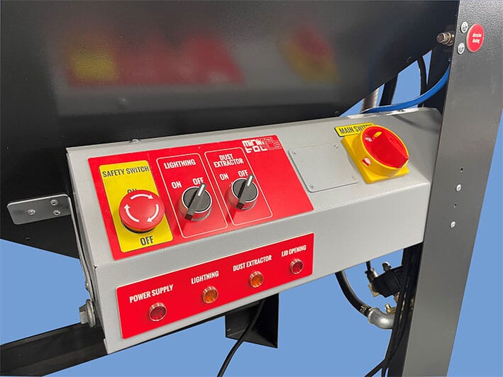 Med stor frontluke er det lett å løfte inn tunge deler for blåsing. De to mindre sidelukene muliggjør blåsing av lange komponenter, som rør o.l.