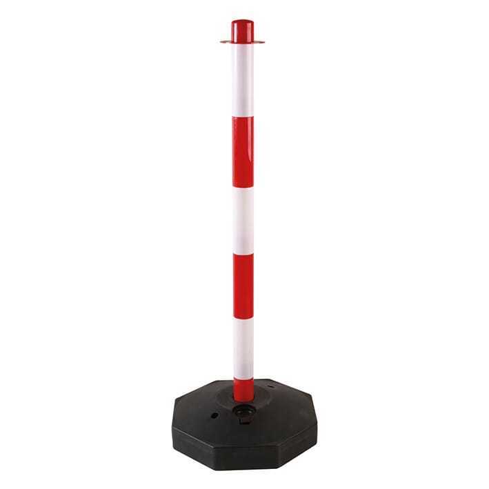 Inneholder 4 stk. stolper med føtter som fylles med vann eller sand for stødighet.