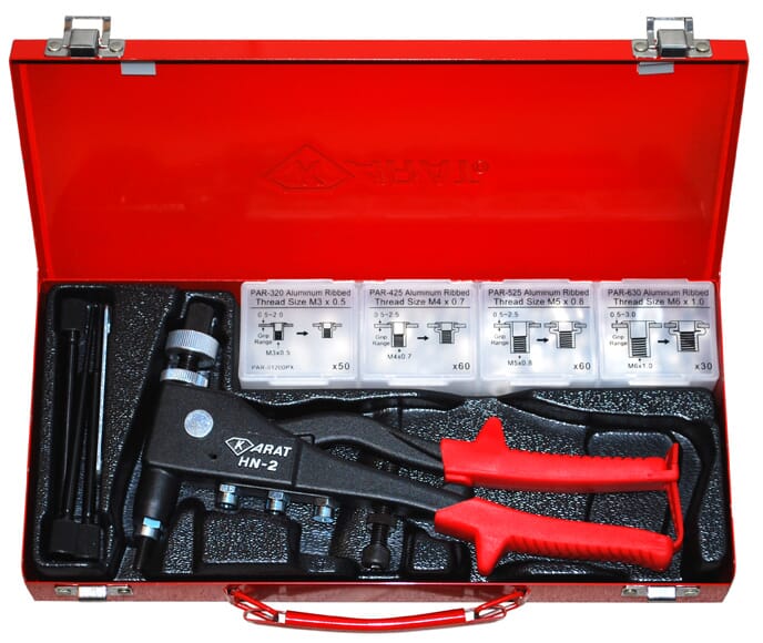 Blindmuttersettet leveres i stålkoffert med industritang modell HN-2.