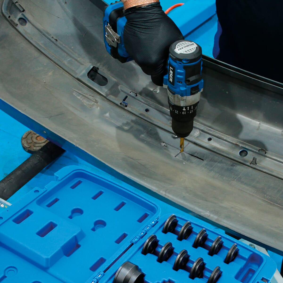 Et omfattende sett med hullstanser til parkeringssensorer for å kutte dimensjonsnøyaktige hull rent og raskt ved montering av parkeringssensorer etter ulykkesskader.