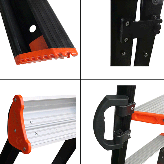 Trappestigen har kraftig pulverlakkert aluminiumsprofil som gjør den svært stabil uten at den blir for tung.