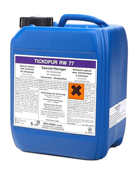 Merke: Bandelin Tickopur RW77Rengjøringstid: 1 - 10 minutenTemperatur: 20-80 °CDosering: 5 %pH-verdi: 9,9 til 1%Surhetsgrad: mildt alkaliskInneholder ammoniakk