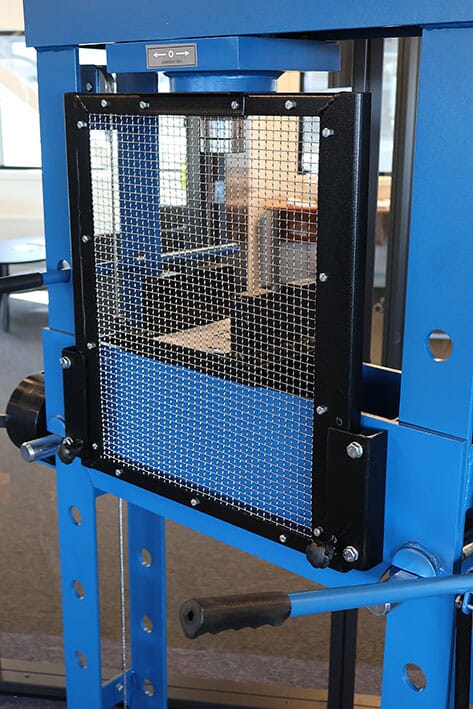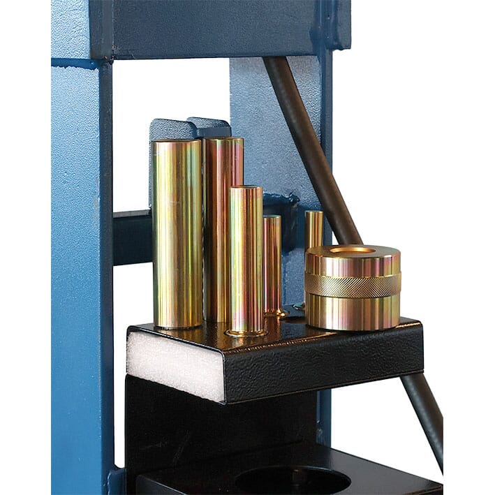 En profesjonell lufthydraulisk verkstedpresse fullspekket med utstyr. Leveres komplett med: