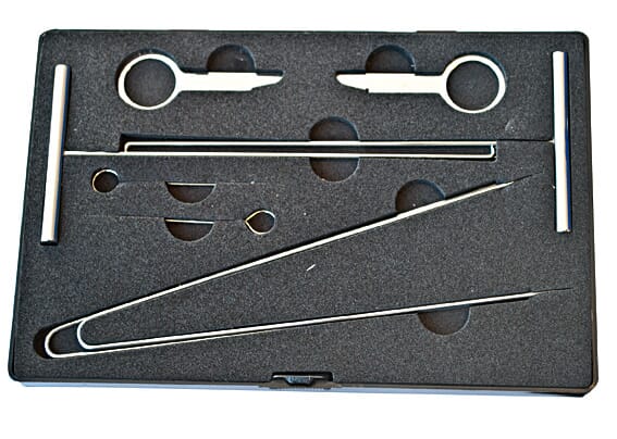 Komplett verktøysett for demontering av tenningslås, instrumentpanel og radio på Mercedes.