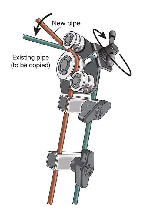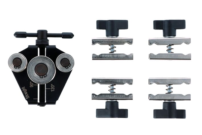 Settet inneholder en svært kompakt rørbøyer og 4 stk. mal-klemmer slik at man