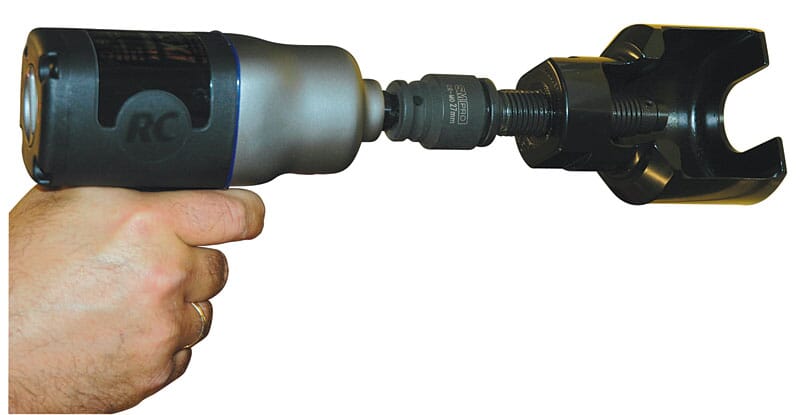 En ny patent med spesialkonstruerte spindler gjør at disse kuleleddavtrekkerene kan benyttes sammen med en muttertrekker.