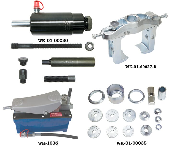 Med dette kan du utføre mange av de vanligste jobbene som: bytte av forhulslager og nav, bytte av standard sylindriske foringer, samt bytte av enkelte bakhulslagere.
