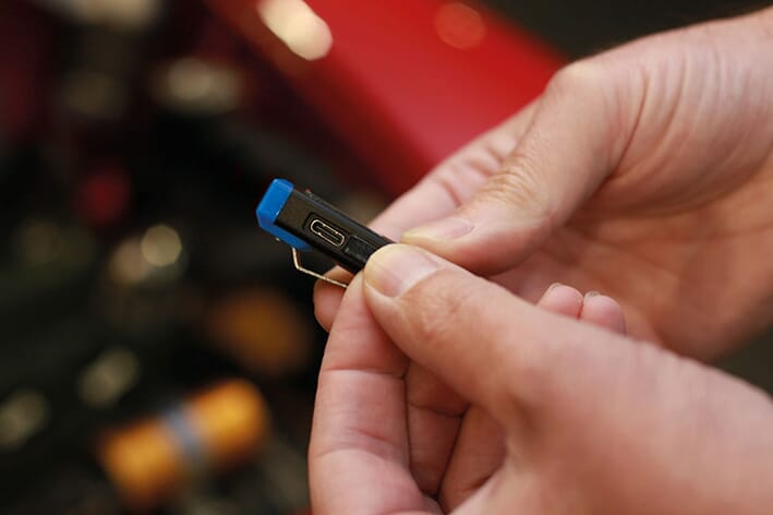 Utstyrt med magnet og krafig lommeklips i stål. USB ladekabel medfølger.