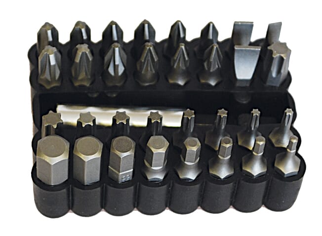 Innhold:Torx: 8-9-10-15-20-25-27-30PZ: 1-2-3, to av hverPH: 1-2-3, to av hverSpor: 4-5, 5-7Unbrako: 2-2,5-3-4-5-6-8-10Magnet bitsholder 1/4"