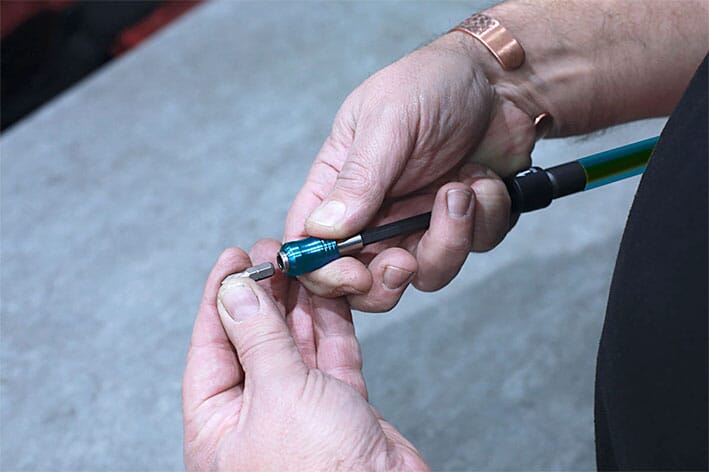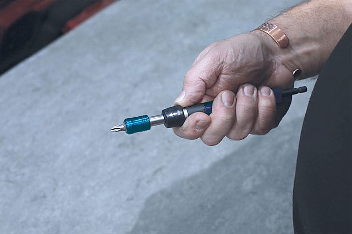 Teleskopisk lang bitsholder med hurtiglås.