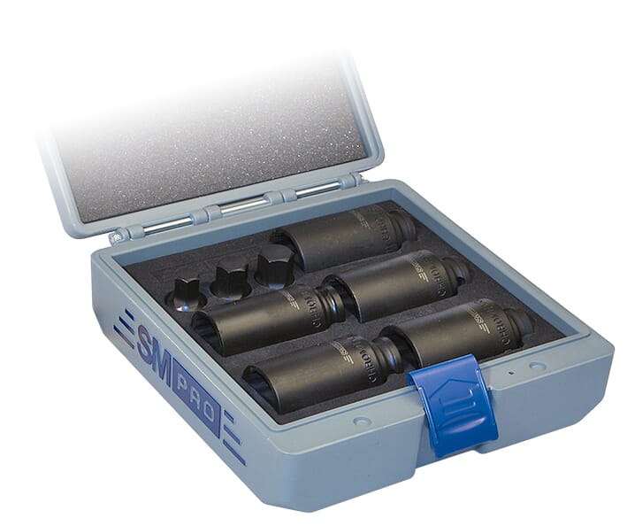 1/2" kraftpipesett i 12-kant med følgende dimensjoner: 27,30,32,34,36mm.