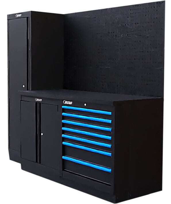 Inneholder høyskap, underskap med dobbeldør og verktøyskap med 7 skuffer.