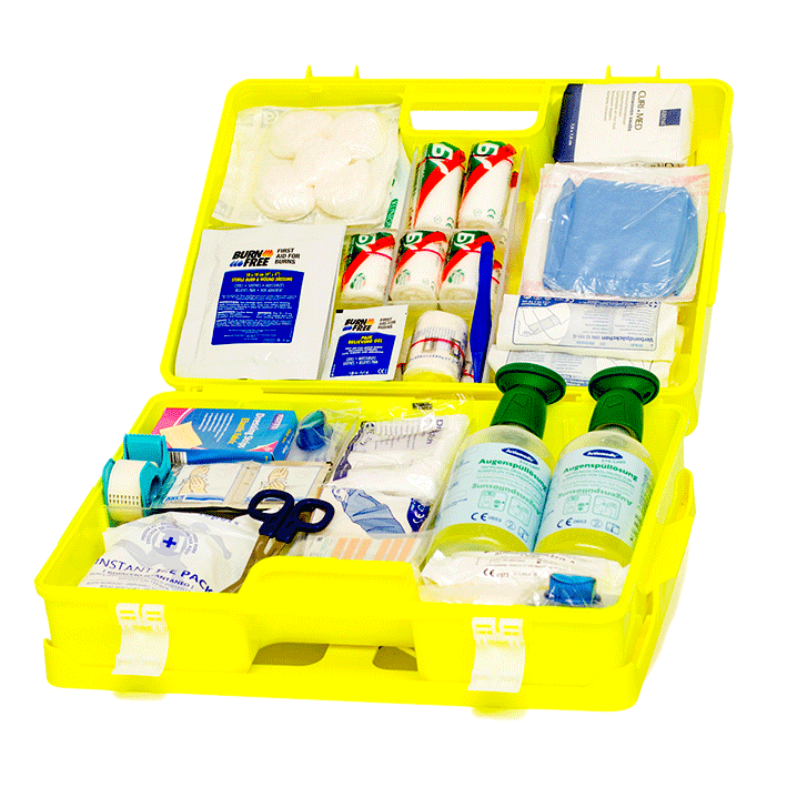 I tillegg til kravet fra arbeidstilsynet er kofferten fylt med forbruksartikler som er nyttige å ha når mindre uhell oppstår.